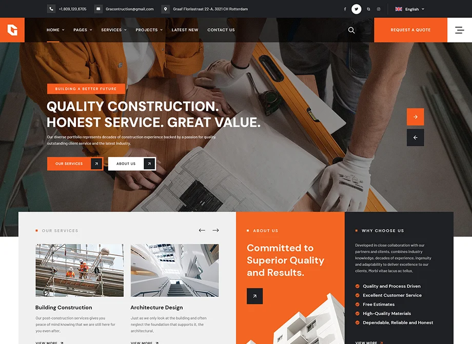 We manage everything from planning and grey structure to finishing with quality materials and professional supervision. Start your project with confidence.
